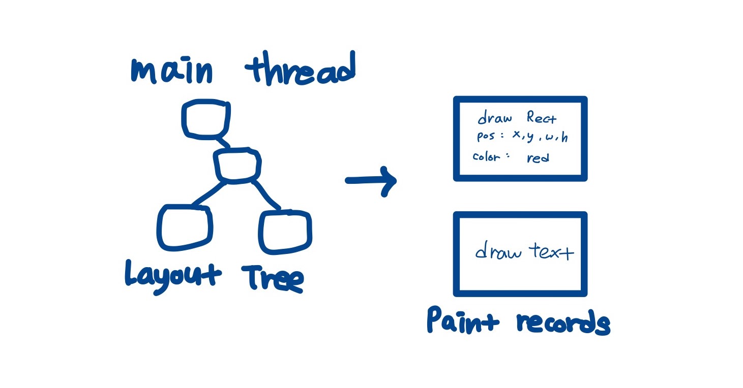 그래서 페인트 단계에서는 레이아웃 트리를 통해 페인트 레코드를 생성합니다. 페인트 레코드는 그림을 어떻게 그릴지에 대한 정보를 알려줍니다.