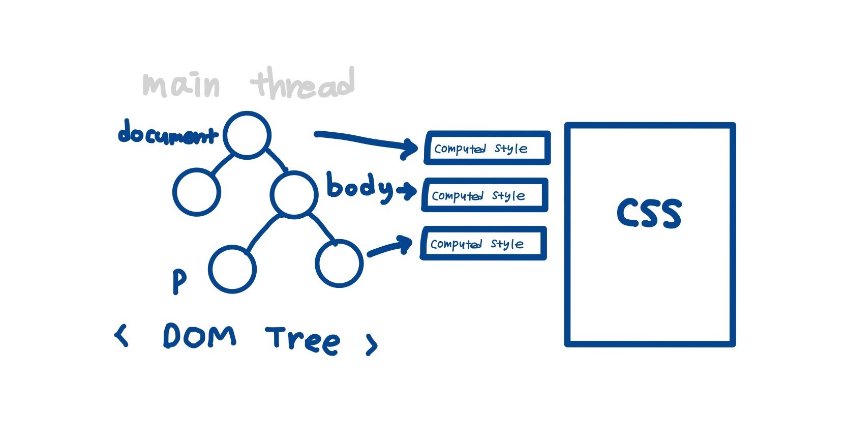 HTML 파싱이 끝나면 CSS 파싱을 시작합니다. <link>, <style>의 CSS를 바탕으로 브라우저가 이해할 수 있는 스타일 시트를 생성하고 각 DOM 노드에 어떤 스타일을 적용할지 스타일을 계산합니다. 계산된 스타일은 개발자 도구에서 확인할 수 있습니다.