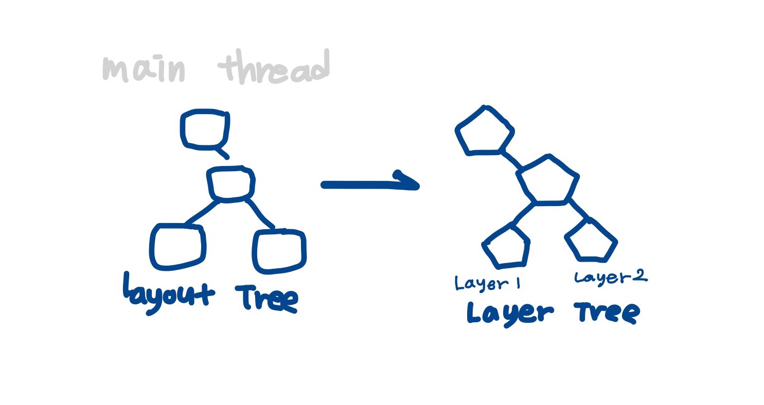 이제 어떤 요소가 어느 레이어에 있어야 하는지 알기 위해서 메인 스레드는 레이아웃 트리를 훑어 레이어 트리를 생성합니다.