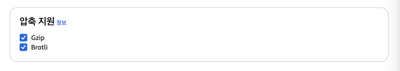 Gzip나 Brotli라는 압축 형식을 사용해서 객체를 압축해주는데 사용자의 브라우저에서 두 형식 모두 지원한다면 기본적으로 Brotli로 압축을 한다. Chrome과 Firefox는 HTTPS 요청일 경우에만 Brotli를 지원한다. 원본 크기의 1/4 이하까지도 용량이 줄어들 수 있다.