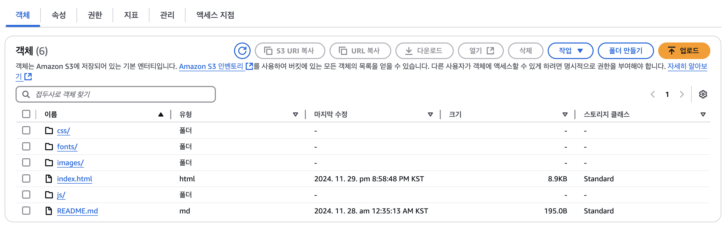 - build 폴더의 내용을 지정된 S3 버킷에 업로드