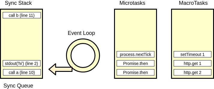 - 콜스택에 실행할 것이 아무것도 남지 않았을 때 마이크로태스크 큐에 있는 작업이 실행됨