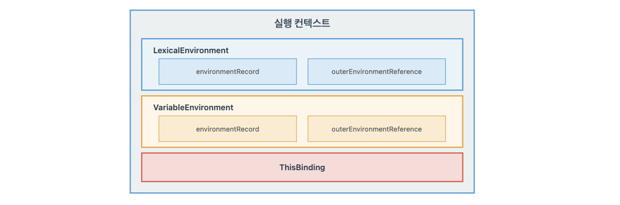 LexicalEnvironment는 두 가지 구성 요소를 가진다: